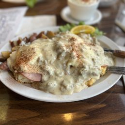 YES.!! that's right came back with the troops after 11 months for the biscuits and gravy. Ahhh. Just as I remembered it. Biscuits light and fluffy, gravy hot and flavourful. Added 3 photos to the game. Service continues to be on point. Staff very attentive, coffee came fast and hot. Love or wait staff. She was smiling through. Although not a fan of broccoli florets in my omelette the chef made it work. Kudos to the chef behind the stove. Ya gotta love the decor inside everything fun.
